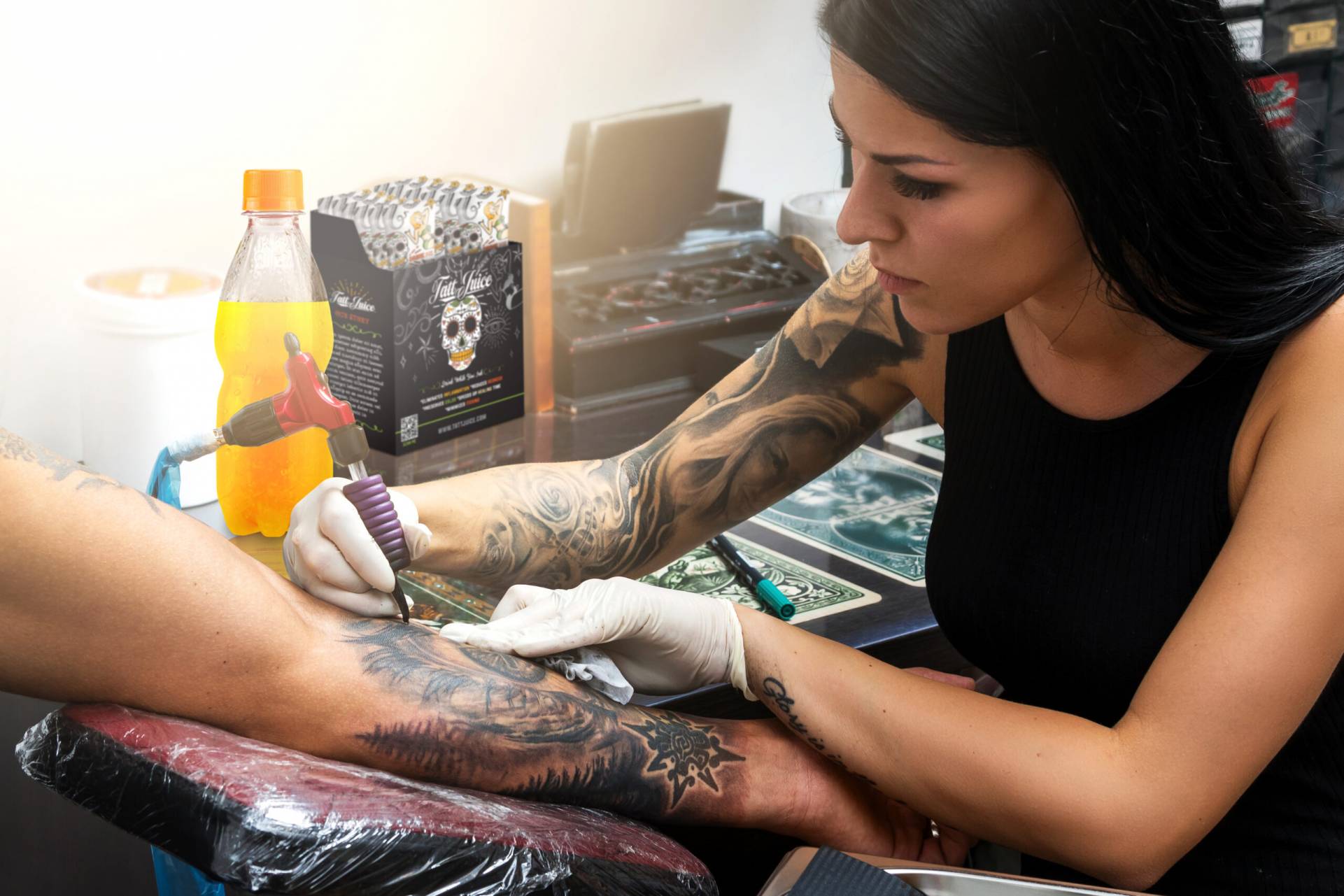 My tattoo artist, Crazy Dave, recommended Tatt Juice and that is exactly why I wont let anyone else touch my skin but him He knows whats up~Tatt Juice is bad a**!